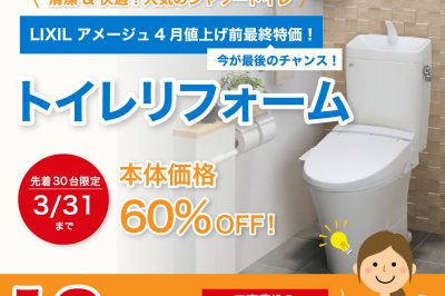 【先着30台限定】LIXIL人気トイレが60%OFF!4月の値上げ前、最後の大特価セール(見積無料)
