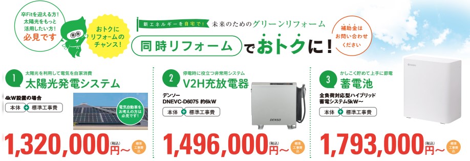 キッチンやバスルームの最新モデルから、家計に優しい「太陽光発電」「蓄電池」などのグリーンリフォームまで、幅広くご提案可能です。 「1dayリフォーム」なら、玄関ドアやコンロの交換も最短1日で完了します。